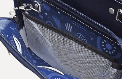 内装の柄だけではなく、細部までたくさんのお花が散りばめられています。色とりどりのお花がランドセルを、そして小学校生活を彩ります。